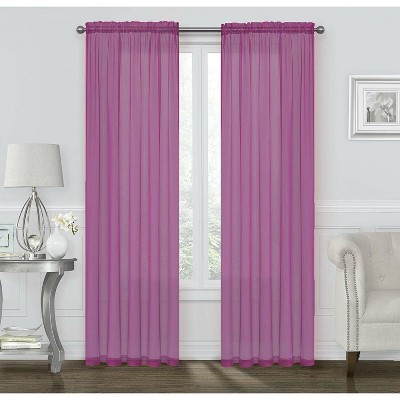 Kate Aurora Coastal Pastel Colored Light & Airy Sheer Voile Window Curtains - 52 in. W x 84 in. L, Purple