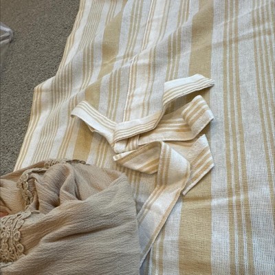Kate Aurora Country Farmhouse Cotton Striped Tie Up Window Curtain - 63 in. Long - Taupe