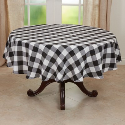 Kate Aurora Country Farmhouse Living Reversible Buffalo Plaid/Solid Table Runners - 13 in. W x 90 in. L, Black