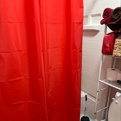 I thought it would be red as it stated in the description. However, it was more of a tangerine color. I was very disappointed. It's not even worth taking it back and the hassle on getting a replacement. It was so bad, I actually started laughing! So, it was funny, but not funny. But it you're looking for a really thick and stiff shower curtain, it's the one for the job.