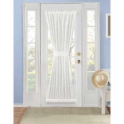 Kate Aurora Living Plaid Sheer French Door Curtain Panel With Tieback - 53 in. W x 72 in. L, Ivory