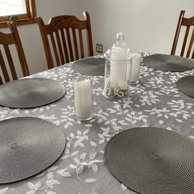 Product Name: Kate Aurora Living Raised Jacquard Floral Leaves Spill Proof Fabric Tablecloth - 60 in. W x 104 in. L, Gray