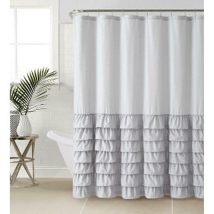 Product Name: Kate Aurora Melanie Shabby Chic Gypsy Semi Ruffled Fabric Shower Curtains - Gray