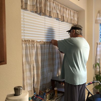 Loved these farmhouse curtains for my kitchen windows with black and white gingham and 🍋 lemon design absolutely love them!! Have bought several for my kitchen and laundry room windows