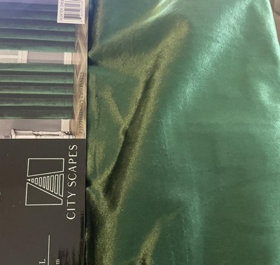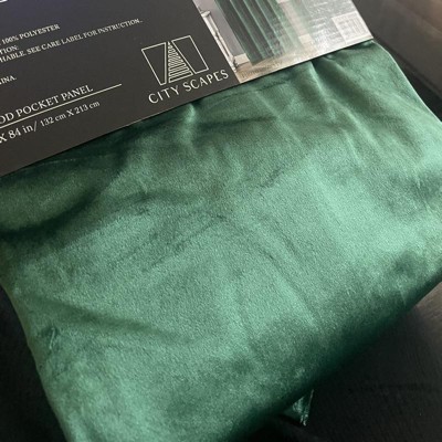 Love love love these drapes! Bought several sets for our family room and they elevated the room so much. The look is strongly velvet and they definitely block out all light. We ended up using three panels for the largest section and two panels for the 50” windows to ensure we had the look we wanted. The green is a beautiful, deep green.