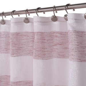 Product Name: Kate Aurora Seaside Chic Cabana Metallic Striped Fabric Shower Curtains - Red
