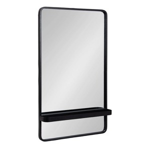 A great way to incorporate a mirror and upgrade your decor, the Kate and Laurel Estero wall mirror will bring a timeless elegance to any room. The shelf makes a dramatic display for ornamental essentials such as a small candle or a little succulent. With its ample amount of surface area, you can also use this as a bathroom vanity mirror with its 3-inch deep shelf for make-up, creams, and lotions. This wall mirror is constructed of high-quality metal in a rounded rectangle shape, giving you a minimal, practical piece of decor with an elegant, modern twist. At 20 inches wide by 34 inches tall, the Estero mirror is a sizable mirror with a space-saving, compact size that fits into a variety of spaces in your home. The modern black finish also offers a modern yet transitional aesthetic that has the capability of blending into any room with a little decorative nudge. Hang this accent mirror in only a matter of seconds with the two keyhole hangers securely attached to the back. Feature it in any living room, bedroom, entryway, dining room, bathroom, hallway, or entryway foyer.