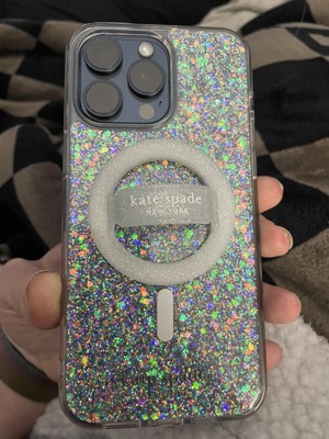 You’ve found your new best friend, the Kate Spade New York Protective Case. Featuring a lightweight look and feel and a co-molded construction for shock absorption,. This case is ideal for everyday use. The signature Kate Spade New York print is the perfect addition to your effortless style. Compatible with Apple iPhone 15 Pro Max. -- Scattered Flowers, Modern Floral Silver, Chunky Glitter Iridescent, Daisy Chain Iridescent all feature a reflective design.