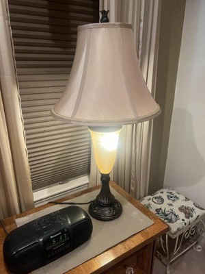 Kathy Ireland Sorrento Traditional Table Lamp 30" Tall Antique Bronze Glass with Nightlight Flared Bell Shade for Bedroom Living Room Bedside Office