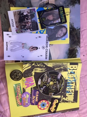 A: Beautiful chaos cd, photobook, component envelope, the cover, 2 photo cards out of 6, a photocard holder, a Polaroid, a poster, 2 or 1 post cards, a katseye sticker pack, and a mini zine (the tracklist in no specific order is Gameboy, Gnarly, Gabriela, MIA and mean girls.