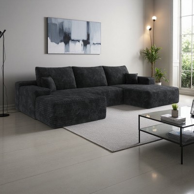 Kayamas 107'' Soft Corduroy Modular L-Shaped Sectional Sofa, 3-Seater Couch with Movable Ottoman for Living Room