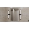 Upgrade your bathroom with the modern style of Kaye. An integrated LED light source shines brightly through the linear etched glass shade, complemented by sleek metal bands. Choose from a variety of sizes, available in your choice of matte black or aged brass. Part of the popular Platinum by Quoizel collection, Kaye bath lights are a perfect complement to modern or contemporary vanity spaces.