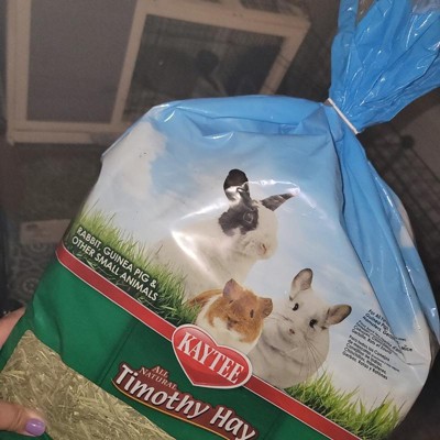 [This review was collected as part of a promotion.] My bunny and my gerbils love Timothy hay! Great sized bag to keep everyone happy. My bunny gets a large handful added to her cage every day so I definitely can appreciate the large size bag. Kaytee has always had quality hay, I recommend it!