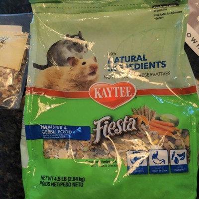[This review was collected as part of a promotion.] The Kaytee Fiesta Hamster and Gerbil food is exactly how it sounds. It has bits of fruits, nuts, and seeds in it that hamsters and gerbils adore. #kaytee