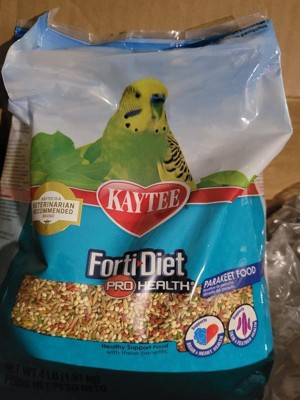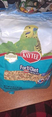 [This review was collected as part of a promotion.] Kaytee Forti-Diet Pro Health Parakeet Food is great. I love the 4 lb bag. It keeps well and my sweet little feathered friend loves it. It offers a nice variety of seeds for little birds. I love products that help keep my little loves healthy and around to live full lives. Great parakeet feed for sure!