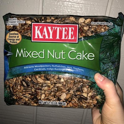 [This review was collected as part of a promotion.] This is my first Mixed Nut Cake and I’m impressed with just looking at it. The variety and quantity of seeds and nuts is awesome. It’s all staying together, even in shipping. I purchased a feeder station and will update when I get everything hung and see how the birds like it. The quality is amazing! So thick and hearty. I was incentivized in exchange for my review of this product.