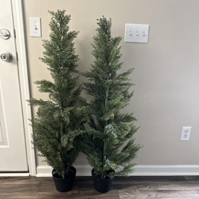 5FT Artificial Cedar Topiary Trees for Indoor and Outdoor UV Protection Christmas Trees for Home Decor Set of 2