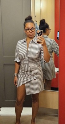 KBB by KAHLANA Women's Long Sleeve 'The Draped Shirtdress' - Blue Striped XS