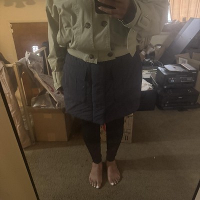 Love this puffer skirt been wanted one for awhile and happen to stumble across this one at Target. When I saw my size I couldn't grab it fast enough. Wore it today with the Kbb duvet coat and received so many compliments. For reference purposes I wear a small but purchased a medium for extra length this skirt has shorts attached.