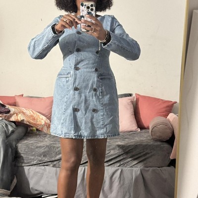 • A: The dress is made from 100% cotton premium denim, ensuring comfort and durability.