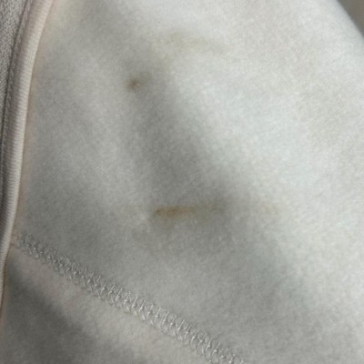 The store sent the Hoodie inside a box with the others items not in a bag no protec have brown stains