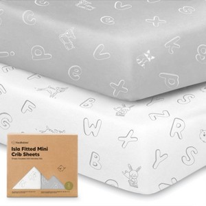 A: Hello, our KeaBabies Isla Fitted Mini Crib Sheets are sized at 38” x 26”. Each Isla Mini Crib Sheet Set includes 2 fitted pack and play sheets that fit most pack n play mattresses, portable play pens, and mini crib mattresses with a height of up to 5 inches.