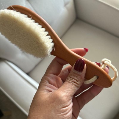 Super soft brush. Densely packed bristles. I’ve never had goat hair anything so I had no idea what it would be like. Would be perfect for newborns.