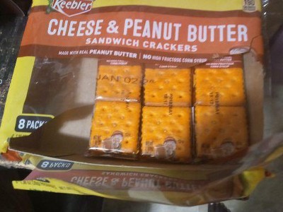 Keebler Cheese and Peanut Butter sandwich crackers are the real deal. These conveniently-packaged crackers feature a tempting combination of crunchy cheese crackers sandwiched around a tasty filling made with real peanut butter for total snacking satisfaction. Made with no high fructose corn syrup, these crunchy, flaky sandwich crackers pack a huge punch of flavor that's irresistible for anytime snack cravings; These sandwich crackers are a great snack to pass out at game time, add to a party spread, pack in a school lunch, enjoy as an after-school treat, grab for late-night snacking and more. The peanut-buttery options are endless. When it's time for an out-of-home excursion, toss a package of Keebler sandwich crackers in your tote to bring along on field trips, trips to the park, or even while you're running everyday errands. You'll love the one-of-a-kind flavor of real peanut butter in every tasty package of Keebler Cheese and Peanut Butter sandwich crackers.
