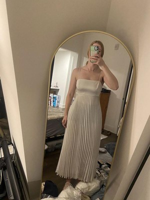 Imagine yourself in a dress that glides with every step, thanks to the luxurious satin sheen finish. The pleated skirt feature adds a touch of sophistication, creating a flow that captures attention. The straight neckline offers a timeless charm, perfectly balancing modern trends with elegance.