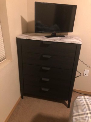 Buylateral Keely Modern 5 Drawer Faux Marble Top Chest Dresser Charcoal Gray: Mid-Century Modern, Bedroom Storage, Faux Marble Top