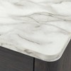 - Crafted of MDF and laminated wood with a faux marble top with a 5.4-inch floor clearance