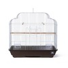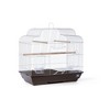 Prevue Pet Products Keet/Tiel Cascade Roof Cage 25213 is a bird home that is as strong as it is beautiful. Built with a heavy gauge wire, this cage provides extra strength and durability. The spacious interior is an ideal flight cage for finch, canary or parakeet. The heavier 10 and 14 gauge wires also make this cage appropriate for cockatiel or small parrot. The attractive cascade style roof gives this cage an elegant appearance and the large 8" Long by 8 1/2" High landing style door provides extra functionality. Comes with 2 plastic feeding cups, 3 perches, a deep tapered base, removable grille and pull-out tray for easy cleaning. Available in a deep brown base with white mesh. Measures 25" Long, 14" Wide, 24" High with 1/2" wire spacing.