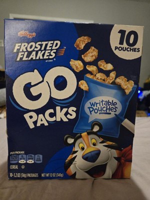 - Includes 1, 12oz box containing 10, 1.2oz pouches of Kellogg's Frosted Flakes Go Packs Original cereal; Packaged for freshness and great taste