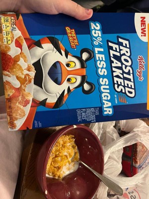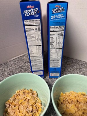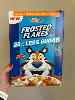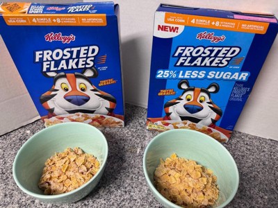 - Less sugar, GR-R-REAT taste; Kellogg's Frosted Flakes Original contains 12g sugar per serving (37g); This cereal contains 9g sugar per serving (37g)