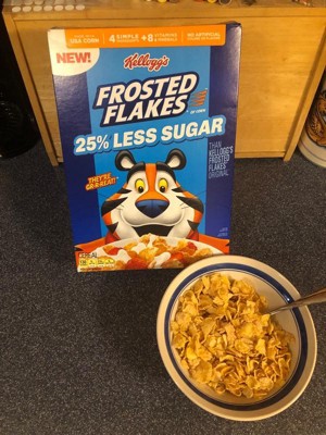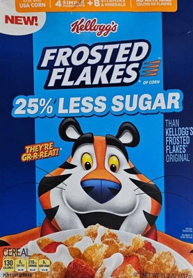 - Includes one 20.3oz family-size box of Kellogg's Frosted Flakes 25% Less Sugar breakfast cereal; Packaged for freshness and great taste