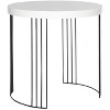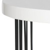 A nod to plane geometry, the round Kelly Side Table creates a crisp contemporary statement beside a sofa or chair. This chic table is crafted with two half circle rows of black iron hairpin legs and a white lacquer top for luxurious shine.
