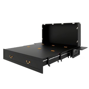 Keloyid Black MDF Frame Queen Murphy Bed Cabinet with Charging Station and Storage Drawer