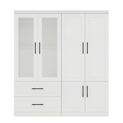 Keloyid White Wood 63 in. Armoire with 4 Drawers and 4 Doors