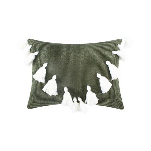 - THE COLLECTION: The sage and cream decorative pillow complements the Kemala Sage collection and features a sage corduroy ground with cream tassels in a V shape giving the appearance of an envelope.