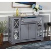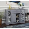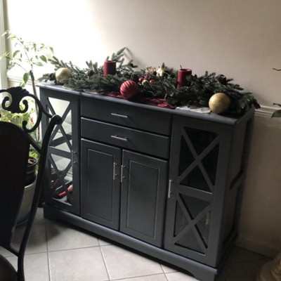 Update your living space with the Kendall Buffet from Buylateral. Ideal for your dining room, this cabinet features unique panel tempered glass doors with an x-shaped overlay and adjustable tempered glass shelving. The concealed closed center cabinet and two drawers provide added space for storing tableware, linens and more. Designed with a gray finish and a transitional style, this cabinet is the perfect complement with most dining room décor.