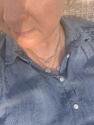 It’s a nice necklace. The length is longer and is great for layering. It goes well with all of my real gold pieces. Not sure how it will wear in the long haul I’m but am happy with my purchase.