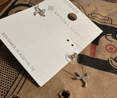 To preserve your fashion jewelry for years to come, agents such as soaps, perfumes, lotions, makeup, hair and cleaning products, and other chemical contact should be avoided. Take care to remove jewelry before showering, sleeping, exercising or swimming. Kendra Scott is known for its design and material innovation, use of color, and signature shapes, and the exclusive collaboration with Target upholds the same design and materials standards. This collection uses genuine materials, including 14k gold over brass and rhodium over brass alongside natural gemstones, to create styles designed to shine.