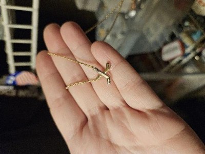 Pretty flimsy quality and when you clasp the chain at the full 19 inches, the hockey sticks aren't even centered at the neckline. Returning.