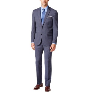 Kenneth Cole Mens Checked Performance Travel Two Button Formal Suit