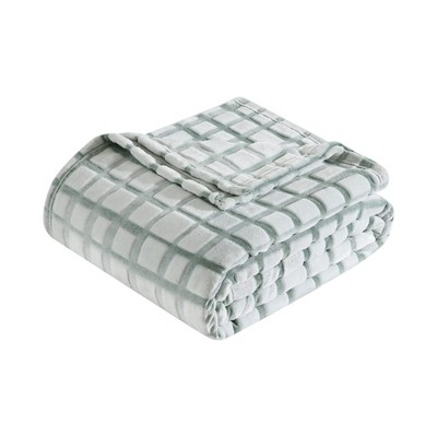 Kenneth Cole Wavy Grid Green Twin Blanket