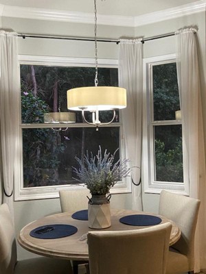 [This review was collected as part of a promotion.] Wow, what a well made chandelier with a nice quality linen look shade. The light is beautiful, it is the case where classic meets modern. Great quality and looks very expensive. It gives off a nice amount of needed light and it can also be dimmed. I replaced my kitchen light with this chandelier and I can say it’s the perfect size over my kitchen breakfast table. It was very easy to assemble and also very logical and easy to install. I am very pleased with this chandelier.