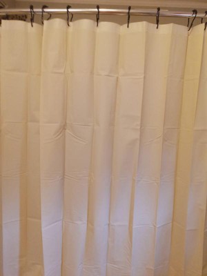 [This review was collected as part of a promotion.] I got this curtain to put under my fabric one. A huge plus, this curtain doesn't stink like plastic. I love that it stays in place and you don't have to worry about it clinging to you.
