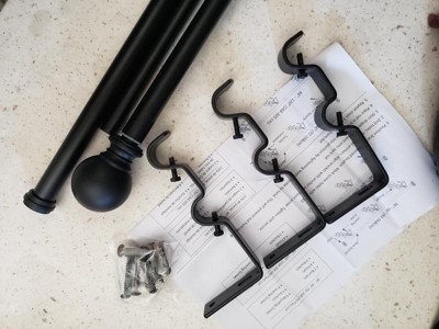 - Steel double rod in black finish with decorative ball finials and matching mounting hardware