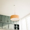 - Modern pendant light: contemporary ceiling light with a brushed steel finish and a stunning natural cork drum shade adds the perfect casual blend of organic and modern accent to your house decor; measures 64 inches in height and 22 inches in diameter