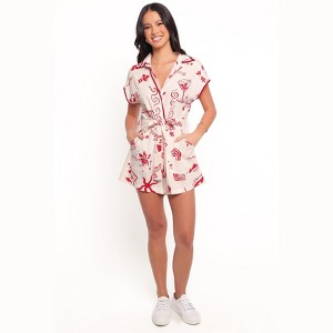 Step into summer with the Kensie Tie Waist Romper. Crafted for those sunny days, this romper features a chic spread collar and a v neckline that frames the face. Its short sleeves keep you cool, while functional buttons down the front add a touch of tailored sophistication.